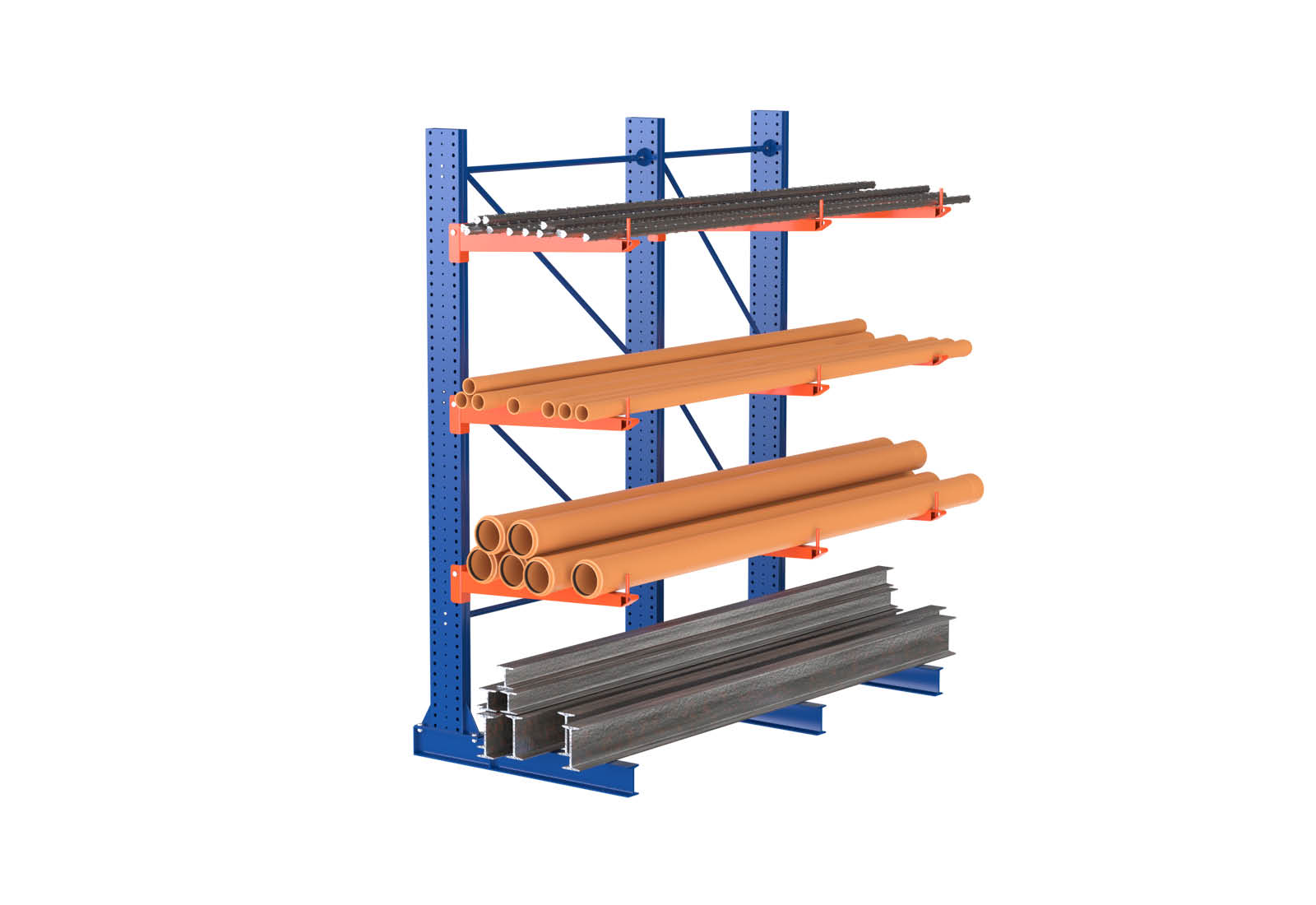 • Reinforced upright connections with horizontal and diagonal bracing for added structural support.