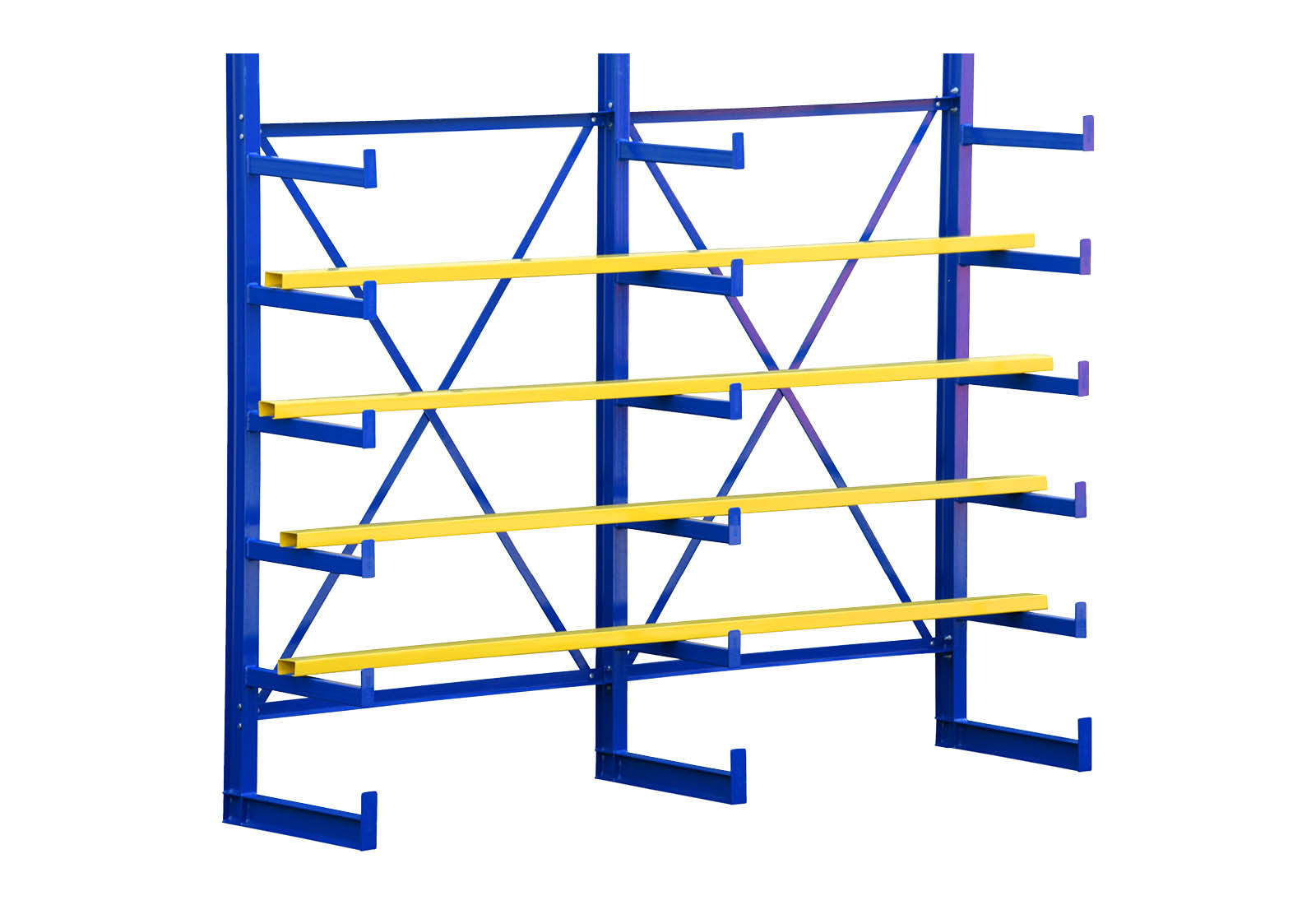The 20 in deep cantilevers in the signal colour of blue are ideal for the storage of long goods.
